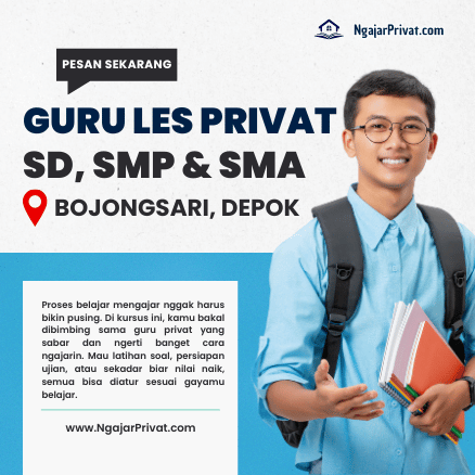 Halo Ayah dan Bunda! Lagi cari guru les privat di Bojongsari, Depok untuk mendampingi anak belajar? Kami dari NgajarPrivat.com siap membantu. Kami melayani kursus privat untuk siswa SD, SMP, dan SMA, baik secara offline dengan guru datang ke rumah atau online via Zoom/Google Meet yang interaktif—bukan sekadar nonton rekaman.