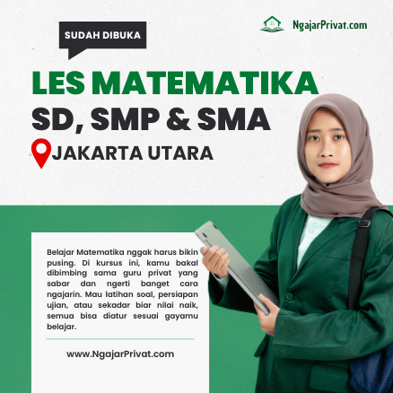 Kami dari NgajarPrivat.com siap membantu anak-anak Ayah dan Bunda yang tinggal di Jakarta Utara untuk belajar matematika dengan metode privat yang efektif dan menyenangkan. Layanan kami tersedia secara offline, dimana guru datang langsung ke rumah siswa, atau secara online melalui Zoom dan Google Meet yang interaktif, bukan sekadar nonton rekaman. Kami mendampingi siswa SD, SMP, dan SMA dengan pendekatan personal agar mereka lebih mudah memahami materi matematika dan semakin percaya diri di sekolah.